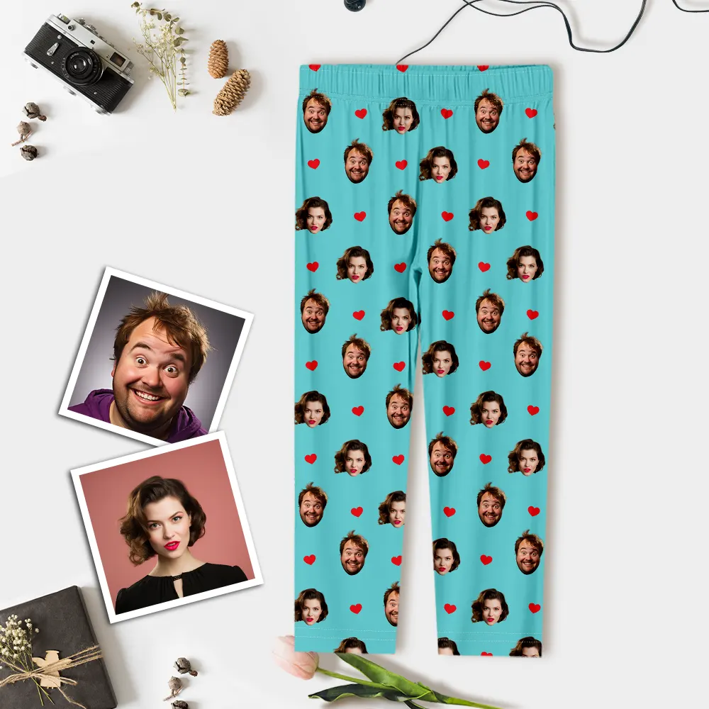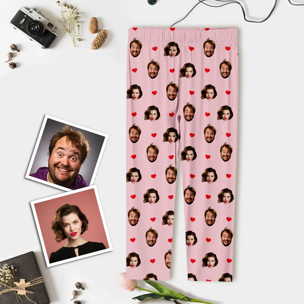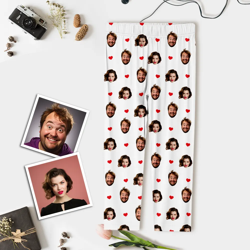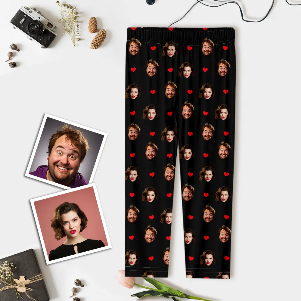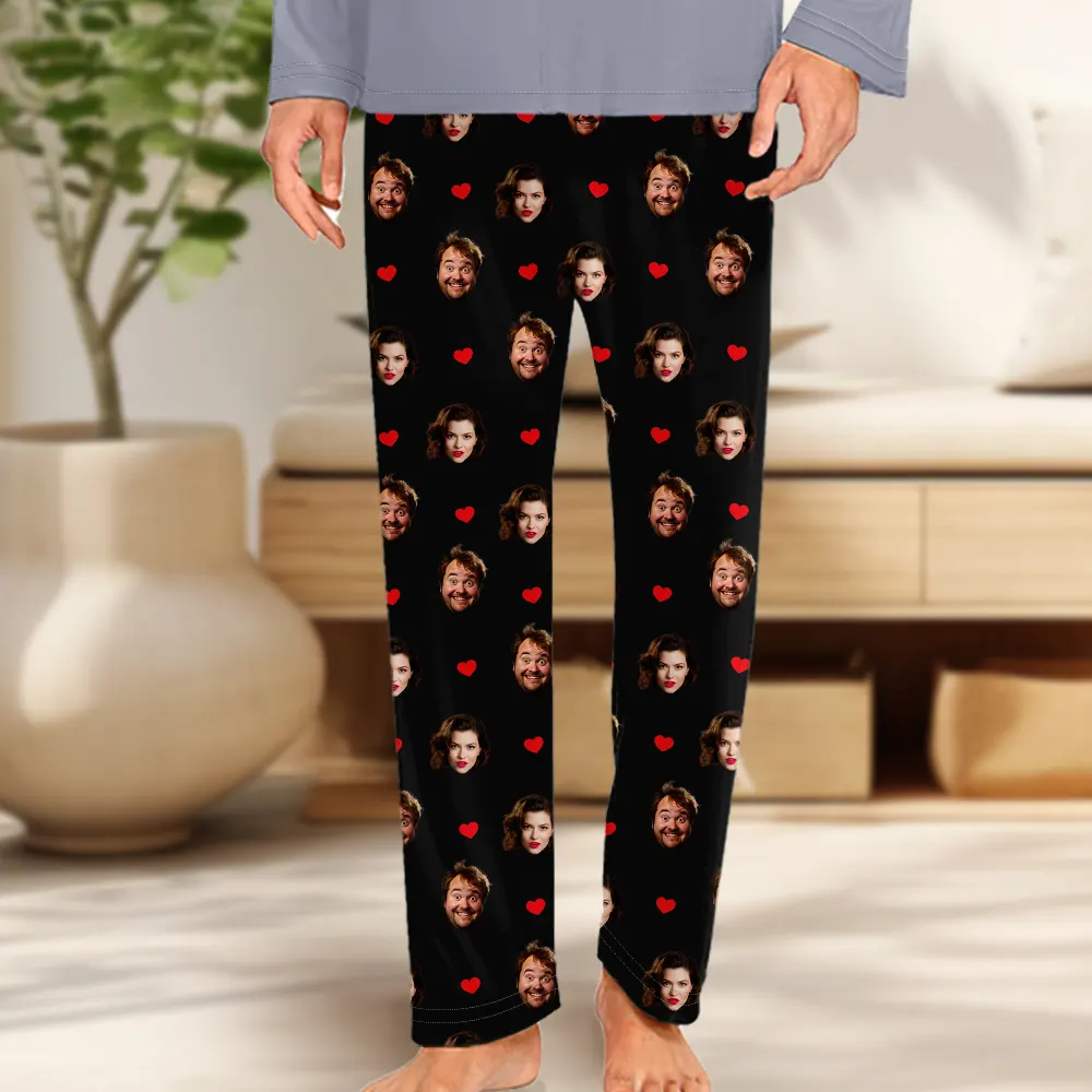 Custom Face Long Sleeve Pajamas & Pants Set – Love Heart Couple Gift Pajamas